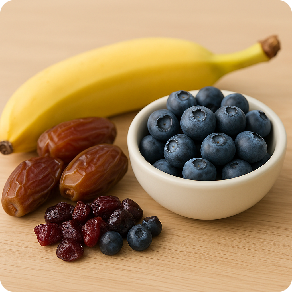 Naturally sweet and nutrient-rich from dates, tart cherries, blueberries, and bananas. Packed with antioxidants, potassium, and fiber to fight inflammation, support recovery, and deliver clean energy with a bold, fruity boost.